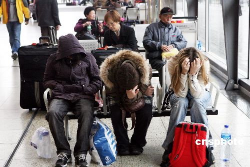 一月二十七日,本應(yīng)二十六日下午三時搭乘T98次京九直通車返京的旅客滯留紅磡車站。由于天氣原因,T98次京九直通車二十七日下午二時后才駛離香港紅磡車站,比原定日期延誤一天。中新社發(fā) 武仲林 攝