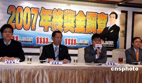 臺灣1111人力銀行發(fā)布2007年終獎金大調(diào)查結(jié)果