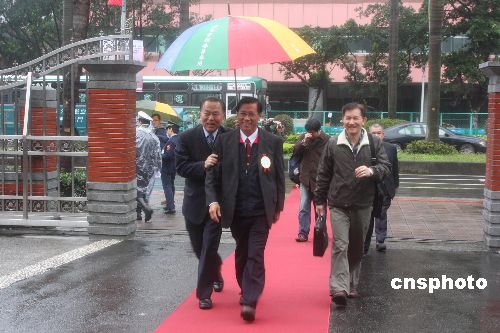 二月一日,臺灣第七屆“立法委員”辦理報到并宣誓就職。資深工作人員親自為每位“立委”撐傘,口中不斷說:“恭喜!恭喜!”中新社發(fā) 耿軍 攝