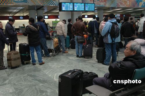 二月三日,澳門國際機(jī)場辦理登機(jī)手續(xù)處排起了長隊(duì)。春節(jié)期間,澳門航空公司加開三十四個航班,分別為杭州兩班,上海十二班,臺北八班和東京包機(jī)十二班,以滿足市場需求。中新社發(fā) 史利 攝