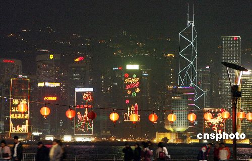 圖:香港維港兩岸紅燈高掛慶新春