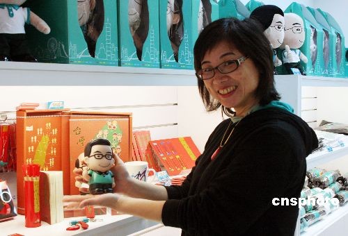 3月10日,有臺(tái)北“長(zhǎng)仔工坊”業(yè)者展示此次民進(jìn)黨候選人謝長(zhǎng)廷、蘇貞昌的創(chuàng)意公仔商品。業(yè)者稱,此番展示的商品,有T恤、手表、文具、飾品、鉛筆、杯墊、鑰匙圈、隨手杯、手機(jī)吊飾等,用創(chuàng)意設(shè)計(jì)手法,呈現(xiàn)謝、蘇的特質(zhì)、形象,展現(xiàn)臺(tái)灣的選舉文化。中新社發(fā) 黃少華 攝