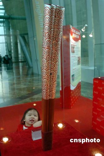 三月十七日,香港一名兒童專注于正展出的一個北京奧運會火炬。當日起,多屆奧運火炬及奧運限量精品在香港旺角朗豪坊展出。中新社發(fā) 譚達明 攝