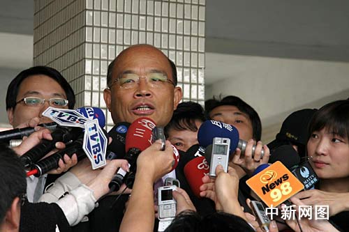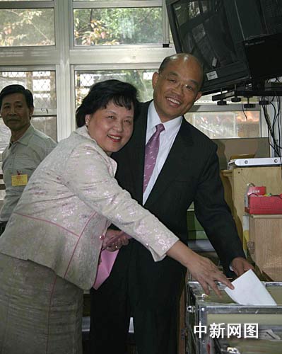 民進(jìn)黨臺(tái)灣地區(qū)副領(lǐng)導(dǎo)人候選人蘇貞昌參加投票