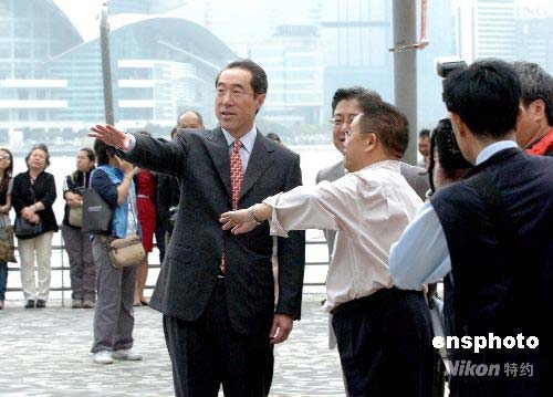 圖:唐英年視察奧運(yùn)火炬?zhèn)魉蜏y試