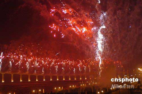 圖:璀璨煙花喜賀澳門(mén)奧運(yùn)火炬接力成功