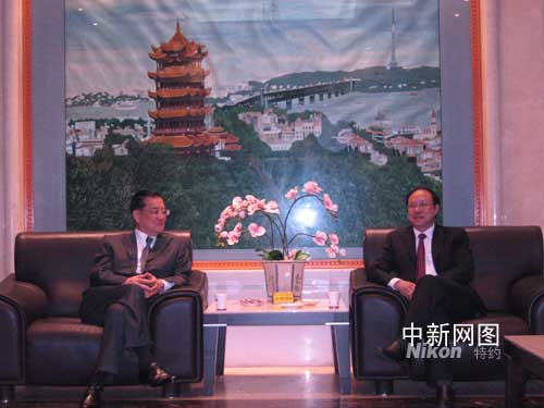 5月6日上午9時05分,中國國民黨榮譽(yù)主席連戰(zhàn)一行乘機(jī)離開武漢,結(jié)束了他此次的大陸之行。連戰(zhàn)一行是于4月28日抵達(dá)北京的,并先后在北京、重慶、湖北等地參訪。 圖為中共中央臺辦常務(wù)副主任鄭立中(右)在武漢天河機(jī)場候機(jī)室與連戰(zhàn)一行道別。作者:艾啟平