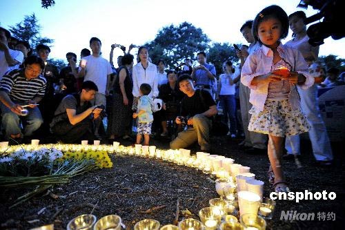 美國華人兒童用燭光為四川受災(zāi)民眾祈福