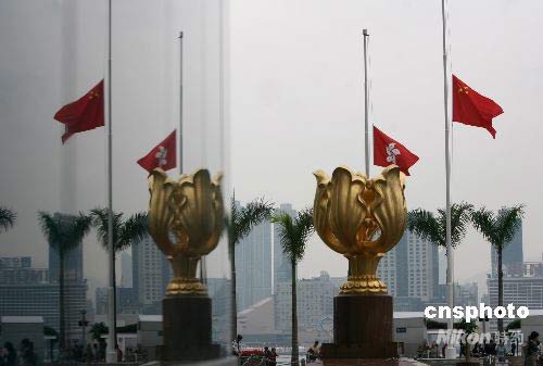 全國哀悼日 香港金紫荊廣場下半旗致哀