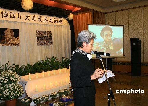 當(dāng)?shù)貢r(shí)間19日下午2時(shí)28分,旅英華人華僑、中資機(jī)構(gòu)和留學(xué)生代表在中國(guó)使館內(nèi),和中國(guó)外交官一起默哀三分鐘,沉痛悼念在四川大地震中遇難的同胞。圖為傅瑩大使在哽咽著致悼詞。