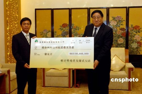 圖:某企業(yè)向四川地震災(zāi)區(qū)捐款一億港元