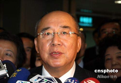 5月26日上午,由中國國民黨主席吳伯雄率領(lǐng)的中國國民黨訪問團一行啟程前往大陸。圖為吳伯雄在桃園機場登機前發(fā)表談話。中新社發(fā) 陳立宇 攝