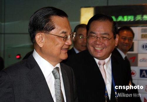 圖:連戰(zhàn)前往桃園機(jī)場為吳伯雄一行送行