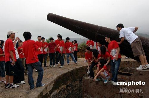 參加兩岸中學(xué)生夏令營的馬祖中學(xué)師生參觀長門炮臺