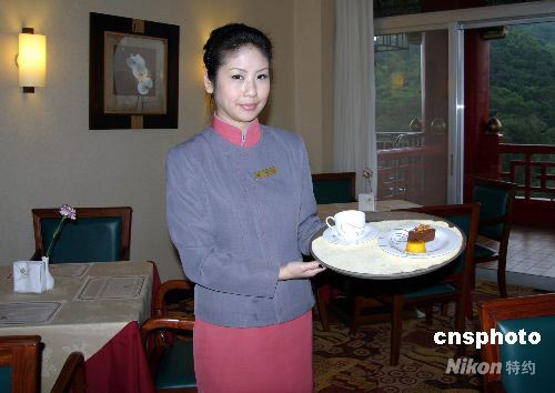 創(chuàng)立于一九五二年的圓山大飯店,是臺(tái)北市的經(jīng)典地標(biāo),其VIP菁英咖啡室提供宋美齡鐘情的巧克力西點(diǎn)。據(jù)介紹,中西合璧、充滿濃濃“老上海”情調(diào)的菜品是圓山飯店一絕。中新社發(fā) 許曉青 攝