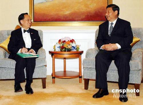 七月六日,中國國家副主席習(xí)近平在香港會(huì)見特區(qū)行政長官曾蔭權(quán)。中新社發(fā) 新聞處 攝