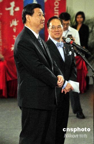 七月六日下午,國家副主席習近平在香港奧運馬術(shù)場地,會見北京奧運香港運動員代表。中新社發(fā) 譚達明 攝