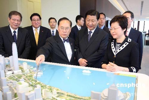 七月七日,首次訪問香港的國家副主席習(xí)近平,來到金融管理局參觀貨幣及銀行體系展覽,同時(shí)了解港粵、港深合作情況。中新社發(fā) 任海霞 攝