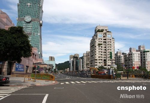 8月28日下午二時半至三時,臺北市舉行“萬安演習(xí)”,車輛行人凈空。圖為原本車輛和行人繁忙的世貿(mào)中心大街一帶道路上空無一人。中新社發(fā) 陳立宇 攝