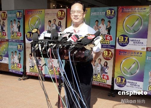 九月七日,香港舉行2008年立法會選舉,香港特區(qū)行政長官曾蔭權(quán)和夫人曾鮑笑薇在高主教書院投票。圖為曾陰權(quán)在投票后接受媒體訪問。中新社發(fā) 張勤 攝