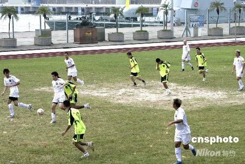九月十五日,香港各界中秋探訪團在董趙洪娉女士和曾鮑笑薇女士的率領下,由香港工商界、演藝界人士等組成,中央駐港機構領導也參加了這一活動。圖為駐港部隊足球隊與香港演藝界明星足球隊舉行友誼賽。中新社發(fā) 張勤 攝