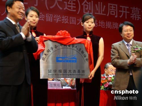 9月24日,由國(guó)家科技部、教育部、人力資源和社會(huì)保障部、國(guó)務(wù)院僑辦、中國(guó)科學(xué)院、歐美同學(xué)會(huì)·中國(guó)留學(xué)人員聯(lián)誼會(huì)和遼寧省政府聯(lián)合主辦的2008中國(guó)海外學(xué)子遼寧(大連)創(chuàng)業(yè)周在大連開(kāi)幕,開(kāi)幕式上還舉行了歐美同學(xué)會(huì)·中國(guó)留學(xué)人員聯(lián)誼會(huì)留學(xué)報(bào)國(guó)大連基地揭牌儀式。中新社發(fā) 宋太盛 攝