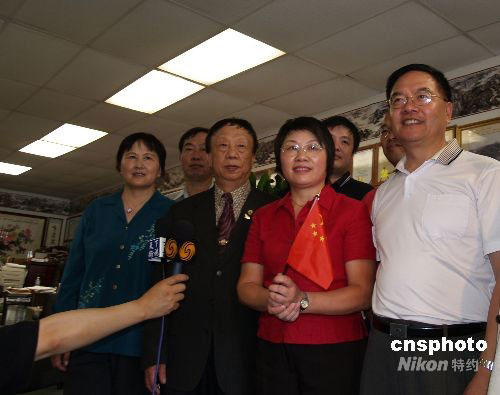 當(dāng)?shù)貢r間9月24日,中國神舟七號載人飛船發(fā)射圓滿成功,極大地鼓舞了海外華人的愛國熱情。美國南加州華人聯(lián)合總會會長程遠(yuǎn)、亞裔聯(lián)盟主席江志成、美國浙江經(jīng)貿(mào)聯(lián)合會榮譽(yù)會長李社潮等僑領(lǐng)聚集在洛杉磯,熱烈慶祝祖國航天事業(yè)取得偉大成就。中新社發(fā) 盧威 攝