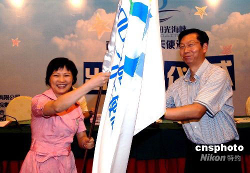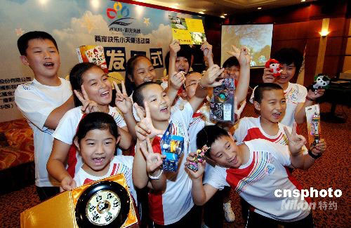9月27日,“2008·陽光海峽”兩岸快樂小天使活動營出發(fā)儀式在福州舉行;顒訝I由福建省廣播影視集團(tuán)和臺灣東森國際股份有限公司主辦,福建省廣播影視集團(tuán)少兒頻道和臺灣東森文化基金會承辦。9月29日至10月5日,參加活動營的福建各地40多名小天使將帶著福建小朋友對臺灣小伙伴的祝福,踏上寶島臺灣。兩地孩子們將同游臺灣日月潭、阿里山,走訪臺北“故宮博物院”、紅毛城,了解臺灣與祖國大陸的歷史淵源等。中新社發(fā) 劉可耕 攝