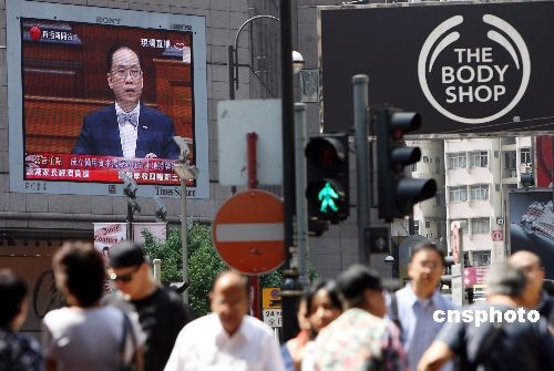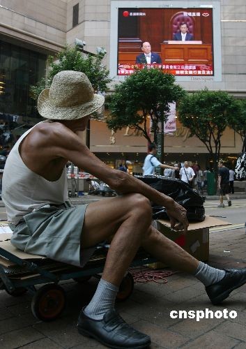十月十五日,香港特別行政區(qū)行政長官曾蔭權在立法會發(fā)表二零零八至零九年施政報告,眾多香港市民在時代廣場通過大屏幕觀看直播。中新社發(fā) 武仲林 攝