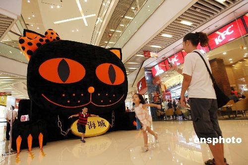 臨近西方萬(wàn)圣節(jié),香港一些商場(chǎng)為催谷顧客消費(fèi),紛紛布置應(yīng)屆裝飾吸引人流。圖為兩名小童在奧海城萬(wàn)圣節(jié)布景前嬉戲玩耍。中新社發(fā) 洪少葵 攝