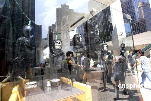 “萬圣節(jié)”將至,香港一家酒吧裝飾的鬼臉飾燈營造節(jié)日氣氛吸引顧客。中新社發(fā) 張勤 攝