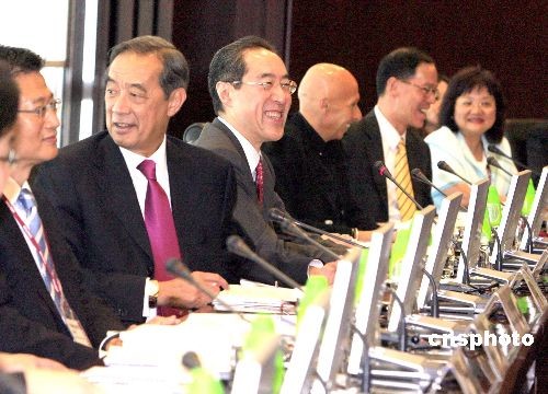 十月二十八日,香港西九文化區(qū)管理局董事局在國(guó)金中心舉行首次會(huì)議,討論招聘行政總裁、成立秘書處等事宜。西九文化區(qū)管理局董事局主席、政務(wù)司司長(zhǎng)唐英年(左三)等與會(huì)。中新社發(fā) 張勤 攝
