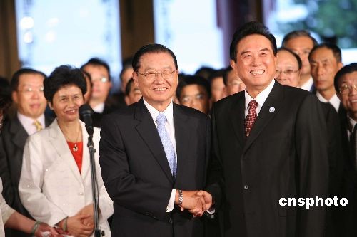 十一月三日,海峽兩岸關(guān)系協(xié)會(huì)會(huì)長(zhǎng)陳云林乘包機(jī)抵達(dá)臺(tái)北,在;鶗(huì)董事長(zhǎng)江丙坤歡迎下入住圓山飯店。陳云林將在四日上午與江丙坤舉行歷史性的臺(tái)北會(huì)談及簽署協(xié)議。中新社發(fā) 洪少葵 攝