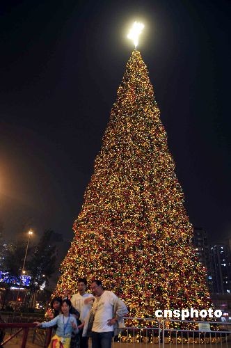 十一月下旬,香港各大商場(chǎng)斥巨資推廣圣誕,以豪裝刺激消費(fèi)意欲。圖為香港奧海城巨型圣誕樹(shù)裝飾。中新社發(fā) 譚達(dá)明 攝