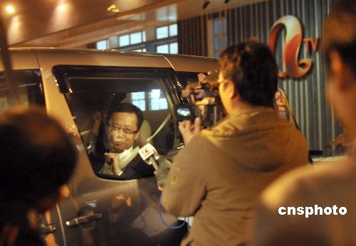 圖為出任亞洲電視行政總裁不足半月的王維基會(huì)后乘車離開。