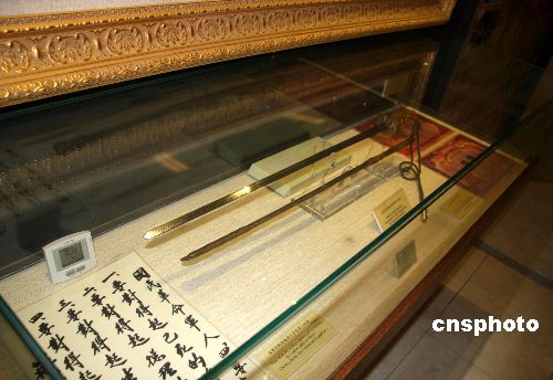 臺北歷史文物館展出蔣介石在北伐戰(zhàn)爭時期使用過的指揮刀。中新社發(fā) 陳立宇 攝