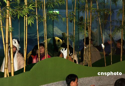 圖為當(dāng)日上午臺灣民眾在臺北市動物園新光特展館排隊參觀團(tuán)團(tuán)圓圓。中新社發(fā) 陳立宇 攝