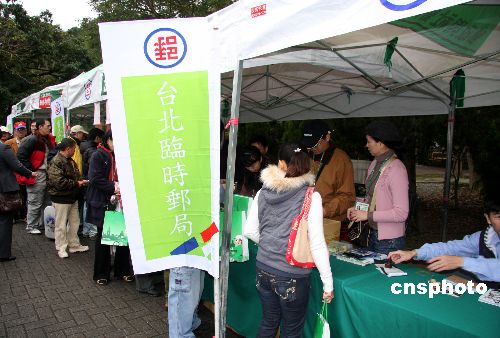 圖為當(dāng)日上午臺北市郵局在動物園內(nèi)設(shè)置了臨時郵局銷售搶手的團(tuán)團(tuán)圓圓的郵票。中新社發(fā) 陳立宇 攝