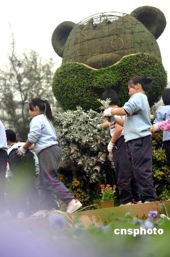 二月二十八日,來自二十間學(xué)校的五百多名學(xué)生,在香港維園協(xié)助鑲嵌大型花壇“森林運動會”花壇。據(jù)悉,今屆花卉展覽展出逾二百個來自香港、內(nèi)地及世界各地參展機構(gòu)的花卉,以及造型獨特的園林景點及花藝擺設(shè),色彩絢麗,形態(tài)各異。中新社發(fā) 譚達明 攝