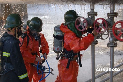 11月6日,安徽省含山縣舉行特種設(shè)備“事故”應(yīng)急反應(yīng)演習(xí),質(zhì)量技術(shù)監(jiān)督、消防、特種設(shè)備救援等多支專業(yè)隊(duì)伍參加了演習(xí)。演習(xí)旨在檢驗(yàn)發(fā)生特種設(shè)備重特大事故后的現(xiàn)場(chǎng)聯(lián)動(dòng)反應(yīng)能力,提高相關(guān)部門在信息傳遞流程、應(yīng)急反應(yīng)速度和應(yīng)急救援技能。中新社發(fā) 田斌峰 攝