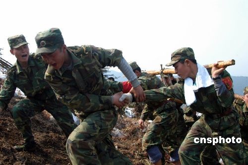 圖:南京軍區(qū)“硬骨頭六連”在江西搶修電網(wǎng)