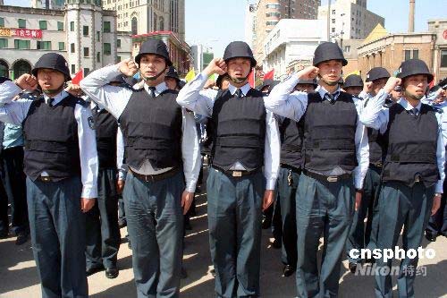 5月8日,遼寧省暨沈陽市保安系統(tǒng)奧運(yùn)安保誓師大會(huì)在中山廣場(chǎng)舉行。會(huì)上公安部門領(lǐng)導(dǎo)對(duì)保安提出要求,保安代表表決心,與會(huì)保安人員面對(duì)國旗和奧運(yùn)會(huì)會(huì)旗莊嚴(yán)宣誓:一切服從奧運(yùn)會(huì),誓保奧運(yùn)會(huì)的絕對(duì)安全。參加大會(huì)的有各級(jí)領(lǐng)導(dǎo)、各方面安保代表600多人。中新社發(fā) 劉寶成 攝