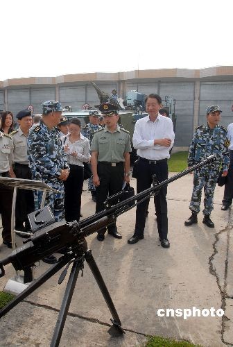 10月15日上午,新加坡國防部長張志賢在廣東省湛江市觀看操作中國海軍陸戰(zhàn)隊(duì)輕武器。當(dāng)天,張志賢在海軍南海艦隊(duì)副參謀長幺志樓少將的陪同下,來到中國海軍陸戰(zhàn)隊(duì)某旅營區(qū)參觀訪問,了解了部隊(duì)基本建設(shè)情況,并參觀了部隊(duì)各式武器。張志賢表示,通過訪問加深了對(duì)中國海軍陸戰(zhàn)隊(duì)的了解,期待新加坡軍隊(duì)同中國軍隊(duì)進(jìn)一步增進(jìn)交流和合作。中新社發(fā) 李滿青 攝