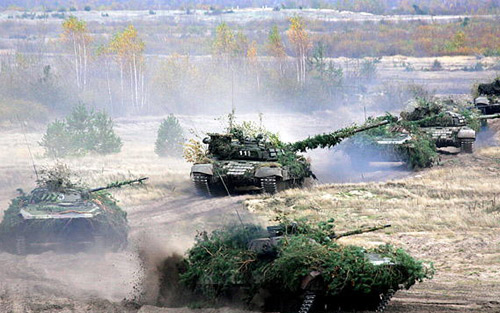 白俄羅斯軍隊的坦克參加演習。