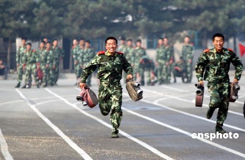 2008年10月22日,沈陽市公安局消防支隊(duì)在消防訓(xùn)練基地隆重舉行“學(xué)啟工,練精兵”比武競賽活動(dòng),活動(dòng)中廣大消防官兵通過體能、技能、戰(zhàn)術(shù)、合成及新裝備演示等幾項(xiàng)基本功的對(duì)決,最終決出誰是“練兵武狀元”。中新社發(fā) 趙敬東 攝