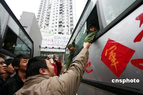 11月19日,進藏新兵在親人們的歡送下離開家鄉(xiāng)。當日,重慶市永川區(qū)首批進藏新兵在區(qū)人武部大院集中,完成了相關交接手續(xù)后,新兵們在親人的祝福聲中,登上大巴車依依不舍地告別親人、告別故鄉(xiāng),踏上了保家衛(wèi)國的征程。中新社發(fā) 陳仕川 攝