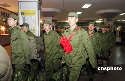 12月11日,來自江蘇、河北兩省的首批500余名新戰(zhàn)士抵達(dá)濟(jì)南軍區(qū)某部,開始軍旅生活。這些新戰(zhàn)士將集中進(jìn)行3個月的軍事強化訓(xùn)練,在完成社會青年向合格軍人的轉(zhuǎn)變后,充實到基層執(zhí)勤第一線,擔(dān)負(fù)起維護(hù)濟(jì)南社會穩(wěn)定、保衛(wèi)人民生命財產(chǎn)安全的神圣職責(zé)。中新社發(fā) 梁志杰 攝