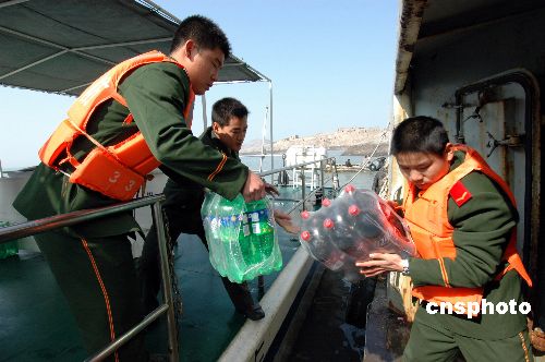 1月21日消息,春節(jié)即將來(lái)臨,浙江溫州邊防支隊(duì)給長(zhǎng)年駐守在遠(yuǎn)離大陸的海島官兵送去蔬菜、水果、飲料等各類食品,為海島官兵提前備好年貨。中新社發(fā) 吳水斌 攝