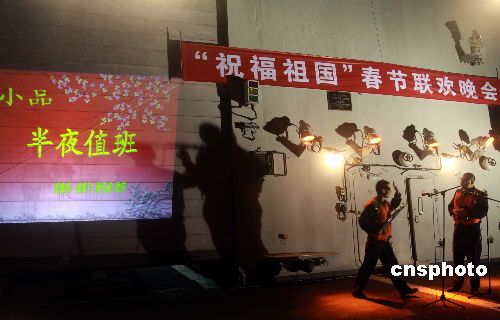 中國傳統(tǒng)的除夕前夜,正在印度洋亞丁灣海域執(zhí)行護(hù)航任務(wù)的中國海軍艦艇編隊“海口”號導(dǎo)彈驅(qū)逐艦,在艦艉甲板上舉行“‘祝福祖國’春節(jié)聯(lián)歡晚會”。護(hù)航官兵們紛紛登臺獻(xiàn)藝,將獨具特色的甲板“春晚”推向一個又一個歡樂的高潮。中新社發(fā) 孫自法 攝