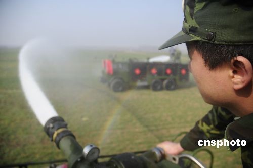 2月10日,駐南陽(yáng)某部的官兵們組成了一支抗旱搶險(xiǎn)突擊隊(duì),出動(dòng)了四輛大型洗消車,往返于河溝與麥田之間,讓干渴的麥苗酣暢淋漓地喝了個(gè)夠。中新社發(fā) 付海厚 攝